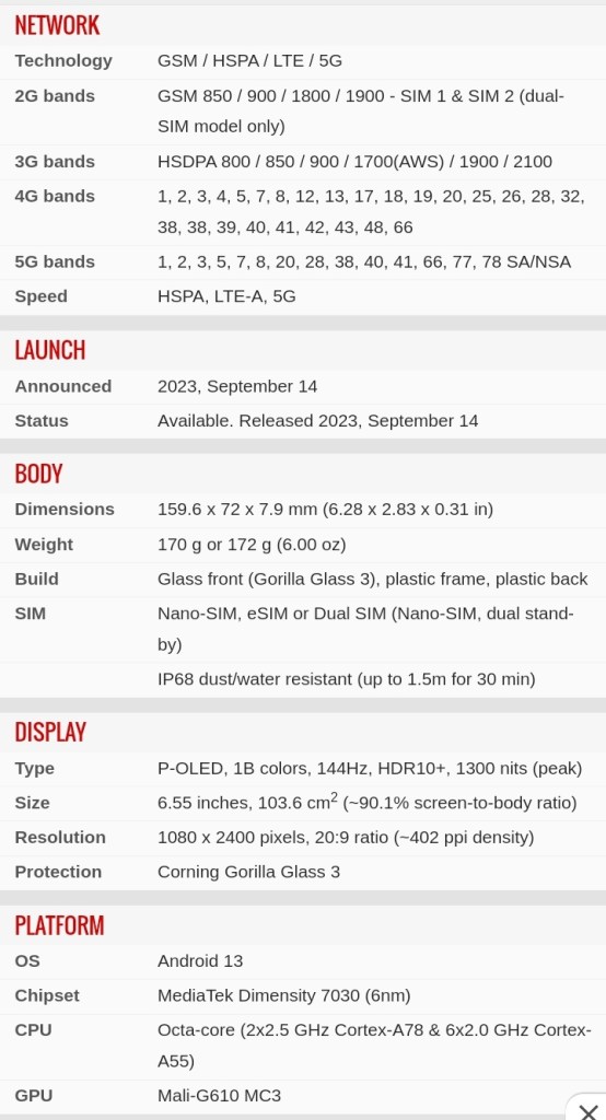 শুধু তাই নয়, এটি বিশ্বের প্রথম স্মার্টফোন, যাতে মিডিয়াটেক ডাইমেনশন 7030 প্রসেসর ব্যবহার করা হয়েছে। ফোনের ডিসপ্লেতে 1300 নিট পর্যন্ত সর্বোচ্চ উজ্জ্বলতা রয়েছে।