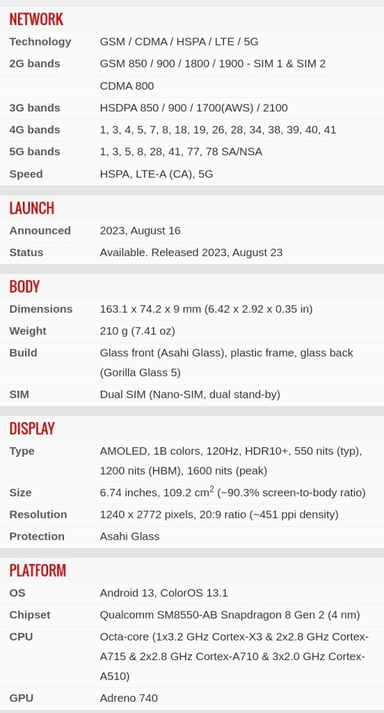 স্পেসিফিকেশন : সাম্প্রতিক রিপোর্ট অনুযায়ী, OnePlus Ace 2 Pro-এ উচ্চ 1.5K রেজোলিউশন এবং ১২০ হার্টজ রিফ্রেশ রেট সহ ৬.৭৪ ইঞ্চির কার্ভড-এজড ওলেড ডিসপ্লে থাকবে।