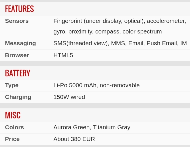 যদিও এগুলি ছাড়া, বেঞ্চমার্ক তালিকাটি আর কোনও বিবরণ প্রকাশ করেনি। তবে যেহেতু দীর্ঘদিন ধরেই ফোনটিকে নিয়ে প্রযুক্তি মহলে জল্পনা চলছে, তাই বেশ কিছু রিপোর্ট থেকে বিভিন্ন স্পেসিফিকেশ সামনে এসেছে।